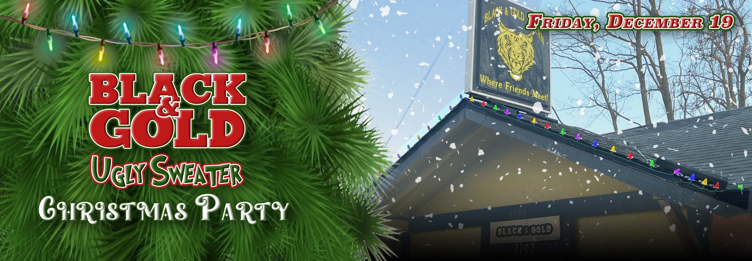 The Black & Gold Ugly Sweater Christmas Party will occur on Friday, December 19! Throw on the ugliest Christmas sweater you can find, and join us!